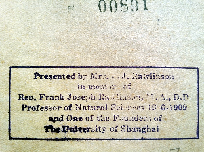 1947年,凌宪扬校长提议沪江大学图书馆改名为“沪江大学湛恩图书馆”,于是不久这批书上又都盖上了“沪江大学湛恩图书馆藏书”的印戳。